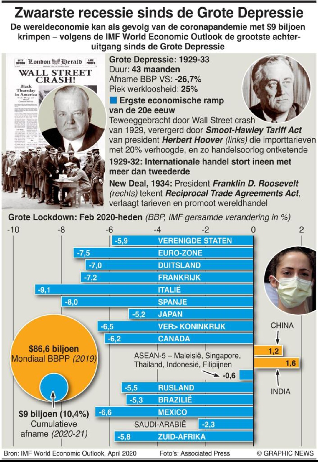 De wereldeconomie kan als gevolg van de coronapandemie met $9 biljoen krimpen – volgens de IMF World Economic Outlook de grootste achteruitgang sinds de Grote Depressie.