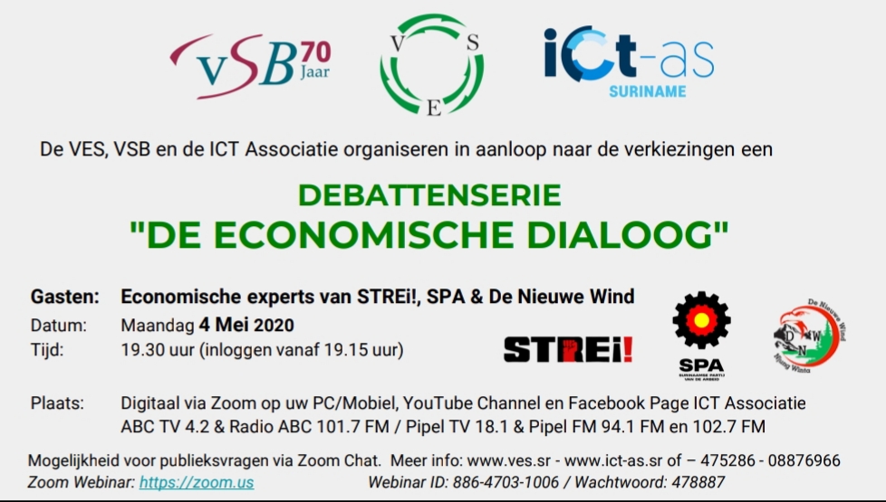 De Nationale Democratische partij, die op schema stond om maandagavond deel te nemen aan de debattenserie “De Economische Dialoog” van de VES, de VSB en de ICT Associatie, gaf vandaag zonder veel uitleg aan niet meer deel te zullen nemen aan de debatten.