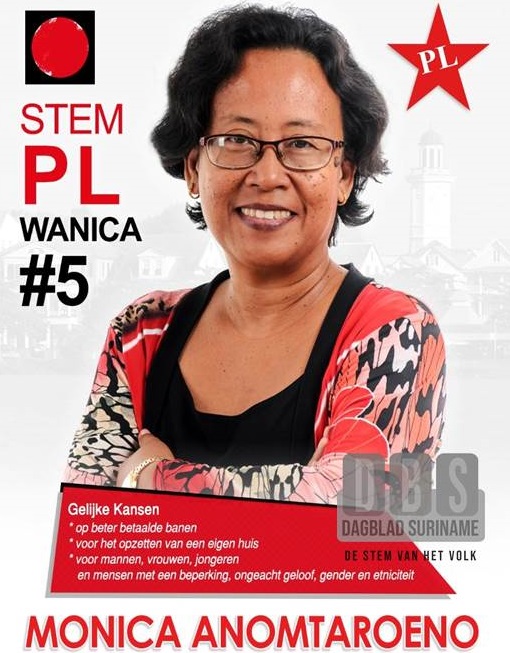 In gesprek met Dagblad Suriname zegt Monica Anomtaroeno dat de PL bijzonder sterk staat in Wanica. Zij is DNA-kandidaat nummer 5 in Wanica voor de PL. “Ik ben eigenlijk een schrijfster van huis uit. Ik ben begonnen bij de Ware Tijd. Maar nu doe ik mediaproducties. Ik ben voorzitter van de Mediaraad bij de PL.” Waarom de PL geeft zij als het volgende aan. “Het sociale aspect raakt me echt. Geld is overal nodig Voor het gezin en de staat. Maar het is ook belangrijk dat je kijk naar het sociaal aspect. We moeten kijken naar de mensen die extra steun nodig hebben. Mensen met een beperking; die hebben geen stem.