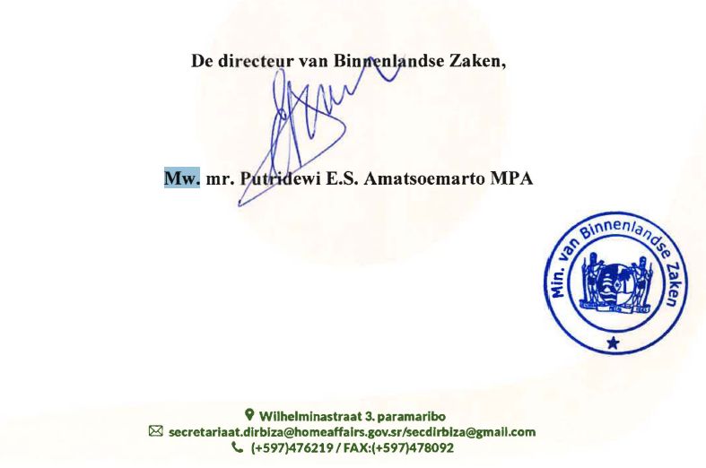 De directeur van het ministerie van Binnenlandse Zaken maakt hierbij bekend dat kiesgerechtigden die hun oproepingskaarten niet hebben ontvangen, deze tot en met 22 mei 2020 kunnen afhalen bij de districtscommissariaten en of bestuurskantoren. De oproepingskaarten die tot en met 22 mei niet zijn afgehaald worden op 25 mei meegestuurd naar de respectieve stembureaus voor verstrekking aan de kiesgerechtigden.