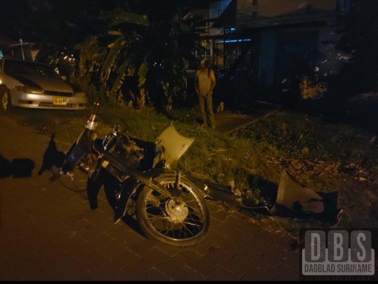 De politie van Nickerie kreeg zaterdagavond omstreeks 23.00 uur een melding van een aanrijding tussen een bromfietser en een auto op de kruising van de Juliana- en de Emmastraat.
