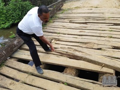 Ook de conditie van de ongeveer 12 houten bruggen die leiden naar dit gebied verkeren in zeer slechte staat. âDe laatste planken hier zijn ook geslagen in de periode van 2010. Daarna is er ook haast niets meer gedaan. Op sommige bruggen kan je niet eens met de auto overheen rijden, maar alleen een kruiwagen erop duwen of fiets. Hoe moet die boer doen als hij 5 zakken NPK-mest moet brengen naar zijn kostgrond of 20 bossen bananen wil terugbrengen?â, aldus Jogi.