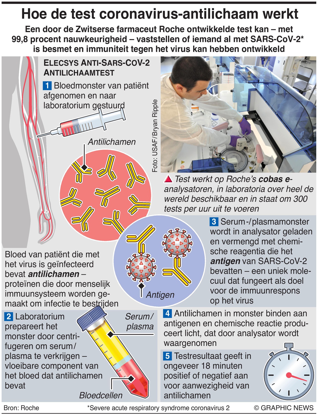 De antilichaamtests – ook bekend als een serologische test – laten zien wie er geïnfecteerd is, hoewel het nog niet duidelijk is of de aanwezigheid van antilichamen tegen het nieuwe coronavirus een permanente immuniteit verleent.