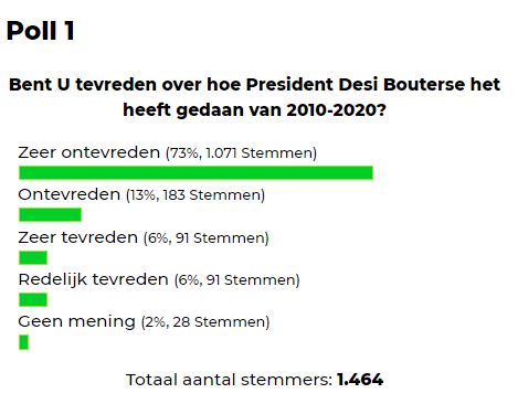 Dat was de vraag in onze peiling van de afgelopen dagen: of u tevreden bent over hoe President Bouterse het heeft gedaan van 2010 tot 2020.