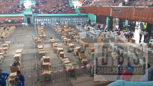 DC Nerkust heeft zonet aangegeven dat vandaag de telling van Paramaribo zal beginnen. Hij heeft de aanwezigen in het NIS gevraagd voor rust. Van elk stembureau wordt het proces verbaal 2 maal gecontroleerd. Rond half 3 wordt er een start gemaakt met het digitaal invoeren van de resultaten per kandidaat.