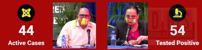 Minister Elias van Volksgezondheid deelde gisteren bij de covid-19 persconferentie de gemeenschap mede dat inmiddels bekend is dat we binnen 24 uren tal van personen erbij gekregen hebben die positief getest zijn op het covid-19 virus. Op het moment dat minister Elias sprak, was het aantal positief getesten nog 53 en en het aantal actieve gevallen 43, maar gaande de persconferentie kwam de melding van nog 1 positief geteste persoon erbij, wat het aantal bracht op 54/44. Al deze mensen zijn in het ziekenhuis, en sommige op de Intensive Care. “Een ieder krijgt medische zorg, en per dag worden honderden mensen getest. Velen zijn in quarantaine geplaatst om de verspreiding in te dammen, en heel Albina wordt onder de loep genomen door het medisch team.”