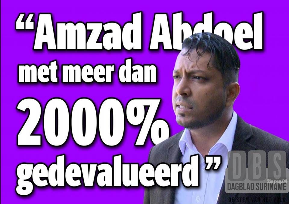 In april 2015, een maand voor de algemene, vrije en geheime verkiezingen, zei Abdoel in een televisie-interview op Apintie TV dat er helemaal geen reden was tot paniek. “Er is geen reden tot paniek. Er komt geen devaluatie. Het heeft alleen te maken met de verkiezingstijd dat er paniek wordt gezaaid”, zei Abdoel. De koers op straat lag toen al dichtbij de SRD 4 ten opzichte van de SRD 3.25 van de moederbank.