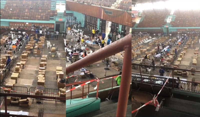 In het Anthony Nesty Stadion wordt er vandaag hard gewerkt; de stemmen op DR/RR niveau van enkele stembureaus worden herteld, zoals stembureau 161 te Latour, maar tot tevredenheid van het aanwezige publiek wordt er overduidelijk hard gewerkt.