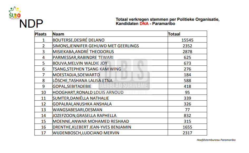 Die cijfers zijn vandaag door het secretariaat van het Hoofstembureau gepresenteerd aan de media in de trouwzaal van het Commissariaat Noord-Oost.