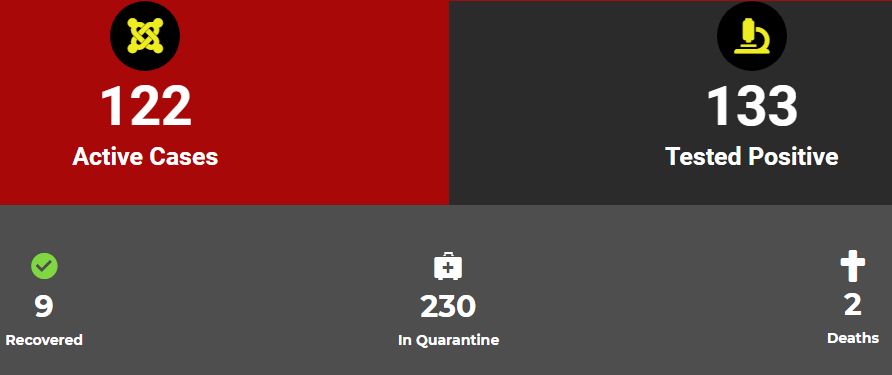 Gisteren in de vooravond klom de covid-19 teller op de website covid-19.sr naar 130. Vanmiddag na 15:00 uur klom die wederom, nu met 3 personen naar 133 positief geteste gevallen, en 122 actieve gevallen.
