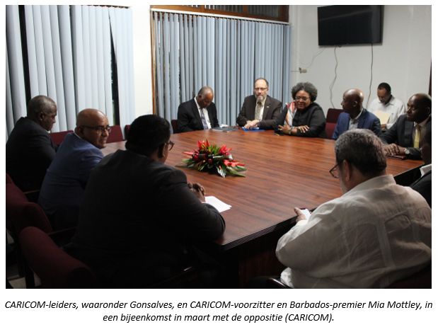 De CARICOM zal niet werkeloos toezien hoe de resultaten van de hertelling terzijde worden geschoven, dus de verliezer van de verkiezingen moet zijn “pakslaag als een man” nemen. Dit is volgens de minister-president van St. Vincent & the Grenadines en de nieuwe voorzitter van CARICOM, Ralph Gonsalves. Nadat hij dit en andere commentaren uitte in een radioprogramma, NBC Radio – “Your Morning Cup” in zijn land, de A Partnership for National Unity + Alliance for Change (APNU+AFC) Coalitie en zijn belangrijkste kiezer, de People’s National Congress Reform (PNCR), reageerden beide afkeurend en noemden zijn commentaren partijdig. De PNCR zei in het bijzonder dat als de huidige voorzitter van de CARICOM en de eerste minister van Barbados, Mia Mottley, geen verklaring afleggen en de regionale unie afstand nemen van de verklaring van Gonsalves, dit zou worden gezien als een poging van de CARICOM om het verkiezingsproces te doen mislukken.