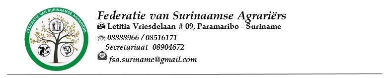 De Federatie van Surinaamse Agrariërs (FSA) is zeer verbaasd te vernemen dat de huidige minister van Landbouw, Veeteelt en Visserij (LVV) drs. Rabindre Parmessar in de laatste periode van zijn ministerschap (demissionair) een nieuwe organogram wenst te implementeren met de benoeming van 4 nieuwe directeuren.