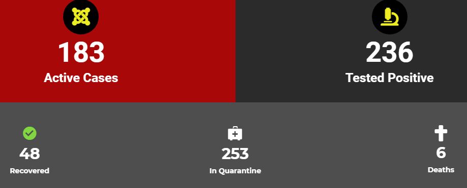 Op de persconferentie van het Covid-19 team op dinsdag 16 juni werd bekendgemaakt dat op maandagmiddag de 5de Covid-19 dode geregistreerd werd, en op dinsdag de 6de. Dat betekent dat helaas reeds 6 personen in Suriname het leven hebben gelaten als gevolg van het coronavirus. De teller van nu actief besmette personen staat nu op 183, dat zijn er 7 meer dan gisteren, het aantal positief geteste personen in totaal op 236 – dat was gisteren nog 229. Wederom werd een dringend beroep gedaan op de gemeenschap om zoveel als mogelijk thuis te blijven en zich aan alle voorschriften te houden.