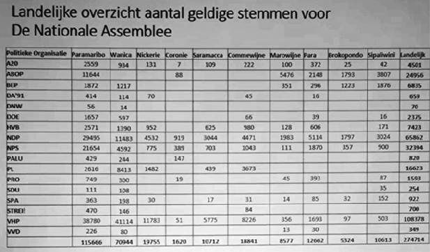 De VHP heeft zoals eerder bekend werd 20 zetels, NDP 16, ABOP 8, NPS 3, BEP 2 en PL 2. Binnen twee weken, de datum is reeds vastgesteld op 29 juni, zullen de gekozen DNA-kandidaten moeten bewilligen.