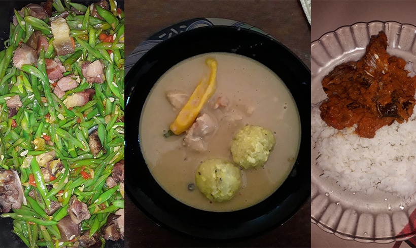 Enkele gerechten waren dus pompoen met warme vis, snijbonen met ham, pindasoep met tom tom