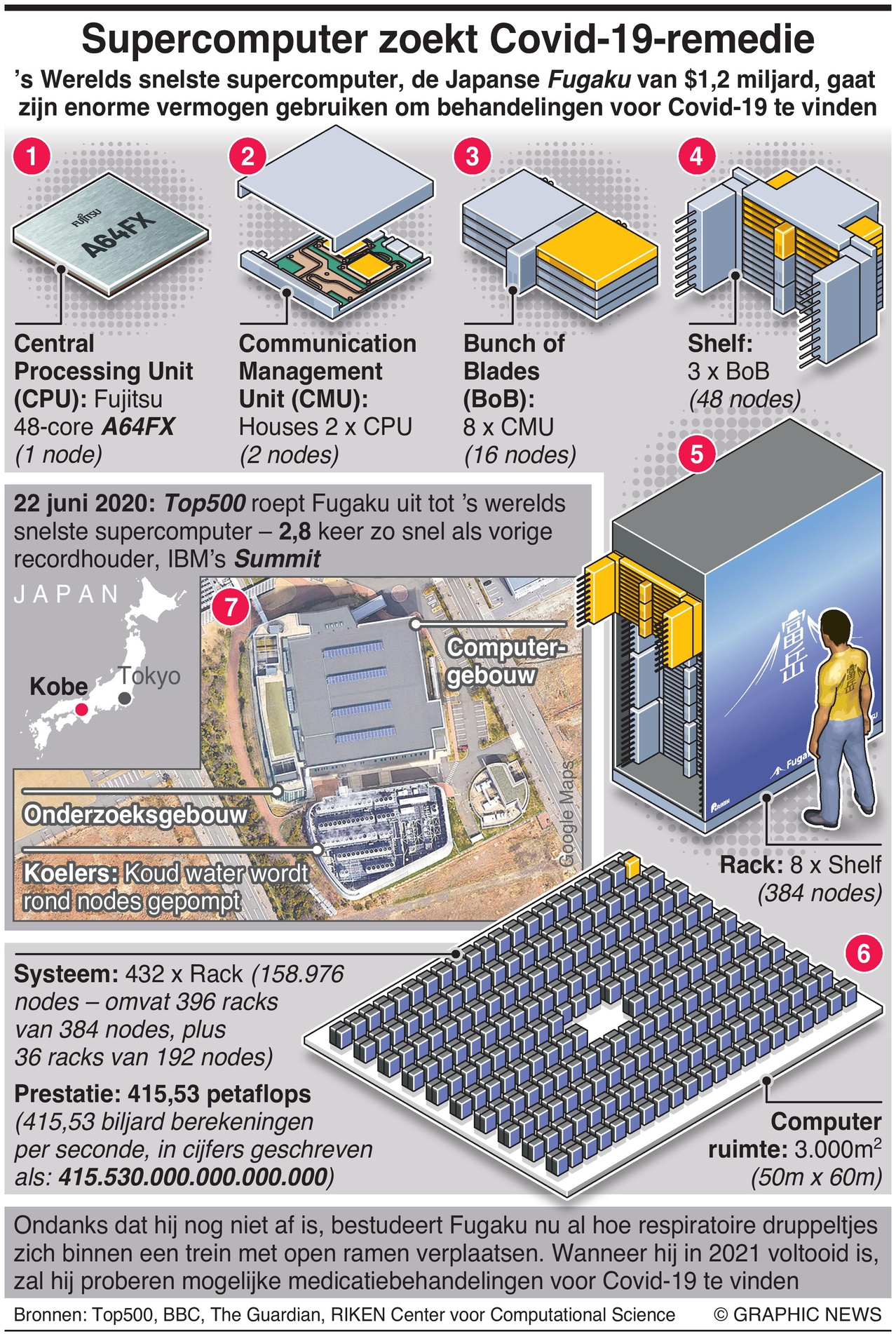De Fugaku supercomputer werd in juni uitgeroepen tot ’s werelds snelste supercomputer en wordt nu al ingezet in de strijd tegen het coronavirus, hoewel hij pas in 2021 volledig operationeel zal zijn.