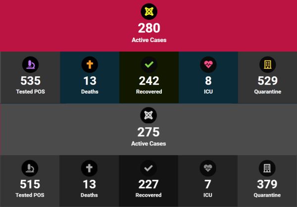 Zeven personen werden ontslagen als genezen uit het Wanica Ziekenhuis, 3 uit de quarantaine van het KKF en 5 uit Residence Inn. Daarmee zijn er op dit moment 280 aktieve gevallen, 535 positief geteste personen, 242 genezen en 529 in quarantaine. In plaats van 7 zijn er nu 8 personen op de IC.