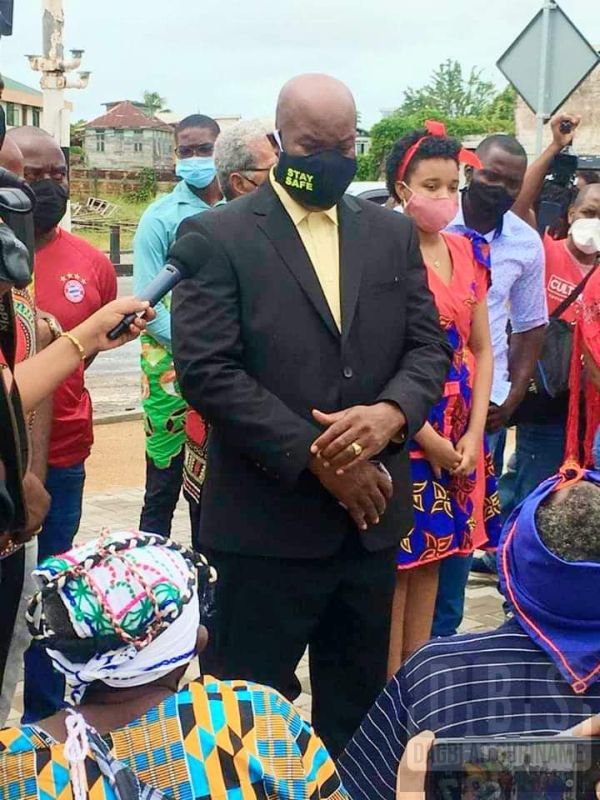 Vandaag heeft de nieuwbakken voorzitter van het parlement Ronnie Brunswijk kransen gelegd bij het standbeeld van Kwakoe.