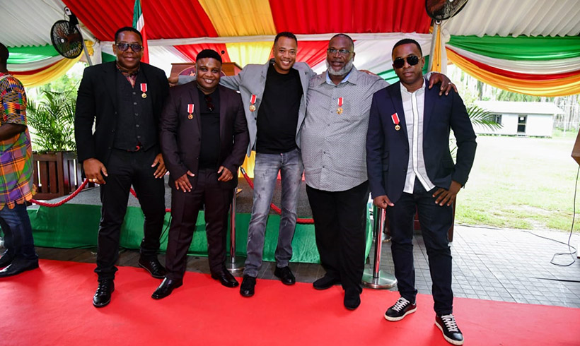 De Surinaamse top producer Roberto The Gboss Banel is voor de 2e keer gedecoreerd door President Bouterse. In een interview met Dagblad Suriname geeft hij mee dat de decoraties hebben plaatsgevonden tegen de achtergrond van 1 juli, de Dag der Vrijheden. In 2018 kreeg Roberto zilver en na bijkans 2 jaar heeft hij vanwege zijn onbaatzuchtige inzet voor land en volk een 2e decoratie mogen ontvangen. Deze keer was het een Eremedaille in goud verbonden aan de Ere orde van de Gele ster. Te y’e meki muyti ini na libi dan ay e de na yu tapu. Den wan san syi a bun san yu e du gi kondre e gi yu teri nanga grani” aldus Gboss. Andere top artiesten die ook een waardering kregen zijn van de bekende Kaseko formatie Aptijt en wel: bandleider Maikel Deira, Timothy Darius, Stephan ‘Stuff Redout en Carlos Aaron, allemaal nog actief in de muziekwereld in Suriname.