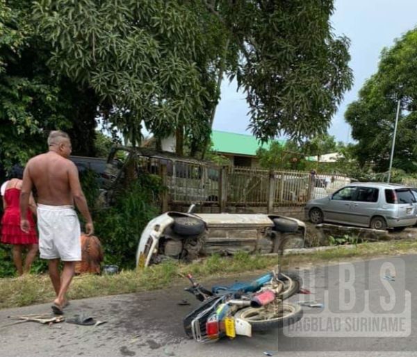 De politie van Verkeersunit Regio Midden Suriname kreeg woensdagmiddag rond 15.00 uur een melding van een aanrijding aan de Monplaisirweg tussen een witgelakte personenwagen en een bromfiets.
