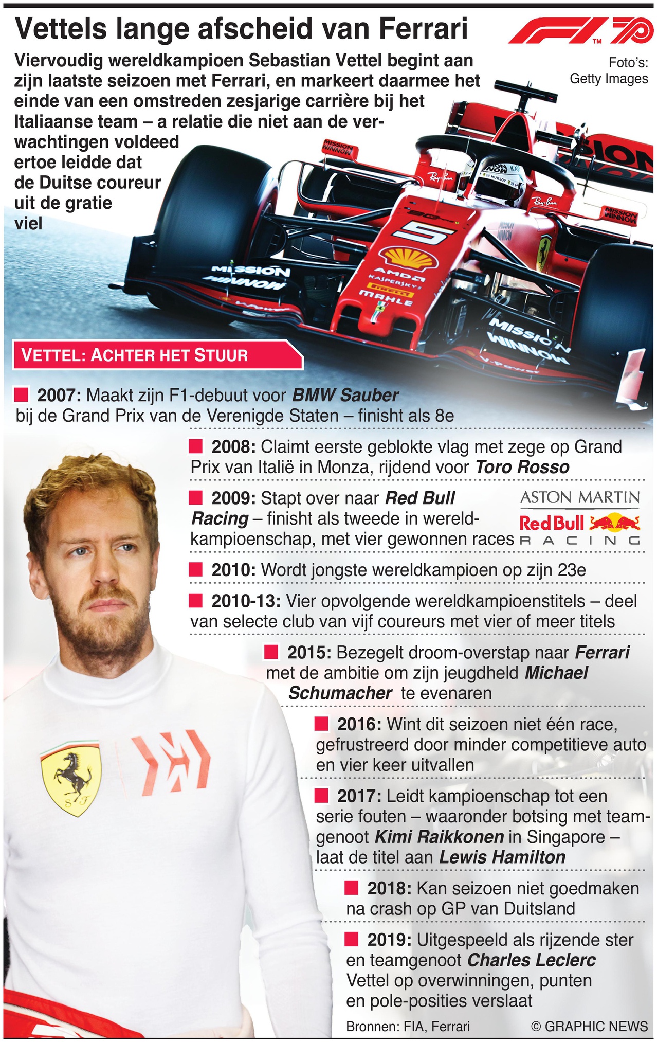 Formule 1 viert zijn 70ste verjaardag als het wereldkampioenschap 2020 van start gaat. Viermalig wereldkampioen Sebastian Vettel begint zijn laatste seizoen bij Ferrari, wat het einde betekent van een omstreden zesjarige carrière bij het Italiaanse team — een relatie die niet aan de verwachtingen voldeed en in een val van de genade voor de Duitse coureur eindigde.