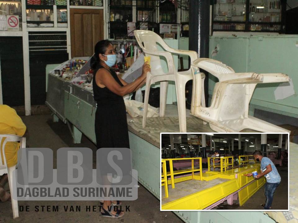 De Centrale Markt Paramaribo heeft na een lange periode van sluiting vandaag de deuren wederom opengegooid. Dit besluit werd afgelopen vrijdag door de marktleiding genomen nadat de standhouders dreigden met acties. In verband hiermee werd de markt het afgelopen weekend onderworpen aan een schoonmaak en werden standjes hier en daar ook opgefrist en geverfd. Sinds 14 maart zitten de standhouders met de handen in het haar nadat de overheid vanwege de uitbraak van het Coronavirus in het land, besloot om alle openbare markten per direct te sluiten. Ondanks dat de markt gesloten was en de standhouders geen inkomen hadden, werden zij echter toch verplicht om het standgeld door te betalen. Een groot deel van de mensen heeft ook niets ontvangen uit het noodfonds dat door de overheid is opgezet om getroffenen te ondersteunen. Ook pogingen van de mensen om enkele maanden terug langs de Jodenbreestraat te verkopen, waren van korte duur. Veel mensen kozen er daarom voor om landelijk langs de straten hun producten uit te stallen. āNatuurlijk gaan wij de Covid-19 maatregelen in acht moeten nemen, maar ik ben blij dat ik nu tenminste weer kan verdienenā, zegt een standhouder aan de krant.