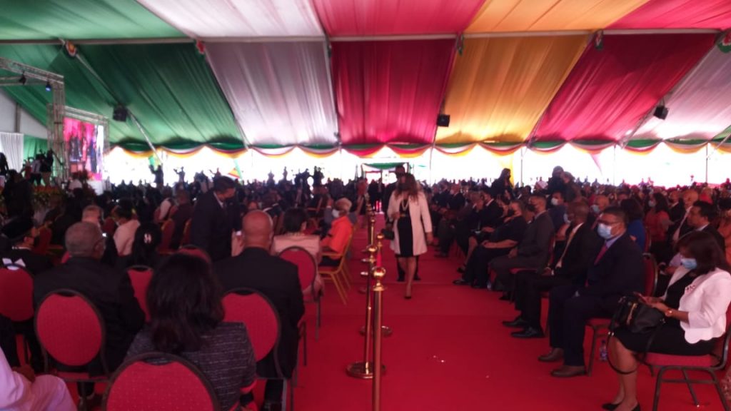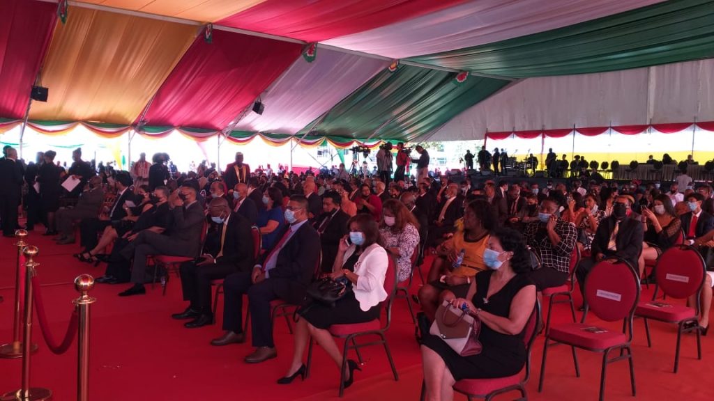 Vicepresident Ronnie Brunswijk heeft de formaliteiten ook al afgehandeld. Scheidende president Desi Bouterse overhandigde de sjerp aan zijn opvolger en wenste hem sterkte en het beste toe.