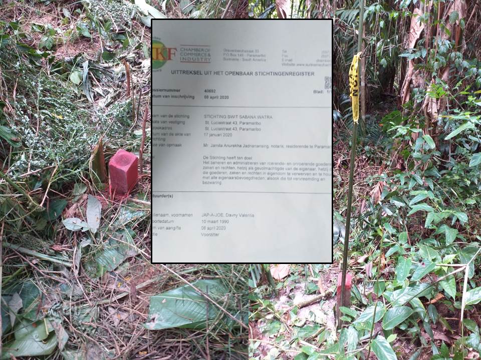 Vermoedens over de uitgifte ontstonden toen de gemeenschap van Para onlangs opgeschrikt werd door landmeters die zich op voornoemde terrein begaven om opmeetwerkzaamheden te verrichten. Onderzoek heeft uitgewezen dat het bedoeld perceelland is uitgegeven aan Stichting Swit Sabana Watra en dat deze stichting de opdracht heeft gegeven om grenspalen aan te brengen. Deze stichting is op 17 januari 2020 opgericht en op 8 april 2020 ingeschreven in de registers van het Kamer van Koophandel en Fabrieken (KKF) en heeft ten doel het beheren en administreren van roerende- en onroerende goederen, zaken en rechten, hetzij als gevolmachtigde van de eigenaar, hetzij die goederen, zaken en rechten in eigendom te verwerven en te houden met alle eigenaarsbevoegdheden, alsook die tot vervreemding en bezwaring. Op het uittreksel van het KKF staat Davny Valentina Jap-a-joe geregistreerd als voorzitter. Sanches vermoedt uit eigen onderzoek dat het hier gaat om een dochter van een boezemvriend van president Desi Bouterse.