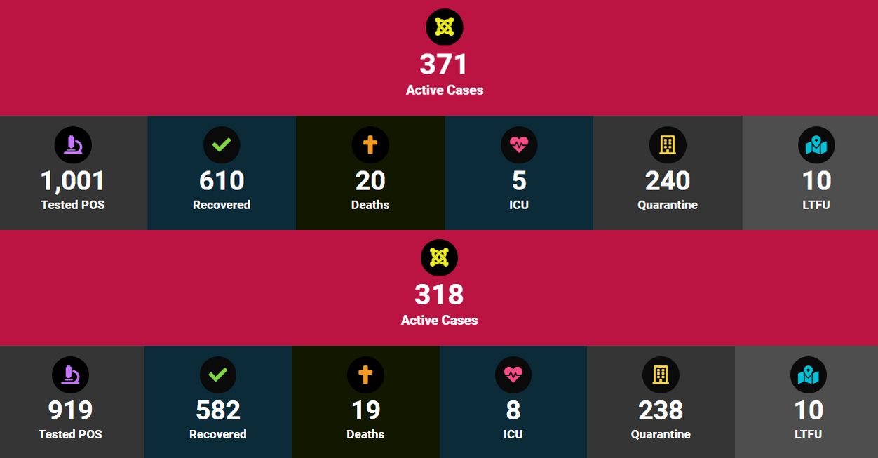Vandaag is te zien dat het totaal aantal positief getesten in Suriname nu voorbij de 1000 is: 1001 om precies te zijn. Het aantal overledenen staat op 20, wat gisteren reeds bekend was maar nog niet op de teller was weergegeven.