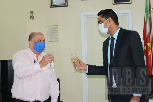 Op het ministerie van Volksgezondheid zal de medicus Amar Ramadhin de scepter zwaaien. Onder aanwezigheid van het directieteam werd op vrijdag 17 juli het protocol van overdracht tussen gewezen minister Antoine Elias en minister Ramadhin getekend. “Minister Ramadhin, geen onbekende op het ministerie, van harte welkom”, aldus ex-minister van Volksgezondheid, Antoine Elias. Tijdens zijn toespraak benadrukte hij dat iedere minister zijn eigen visie heeft, maar dat hij toch de hoop uitspreekt dat de ‘primary health’ zijn aandacht krijgt. “U bent jong en dynamisch, dus u zult een zeer goede job doen met uw deskundigen”, aldus Elias. Met het uitbrengen van een toast wenste hij de nieuwe minister heel veel succes en het allerbeste toe.