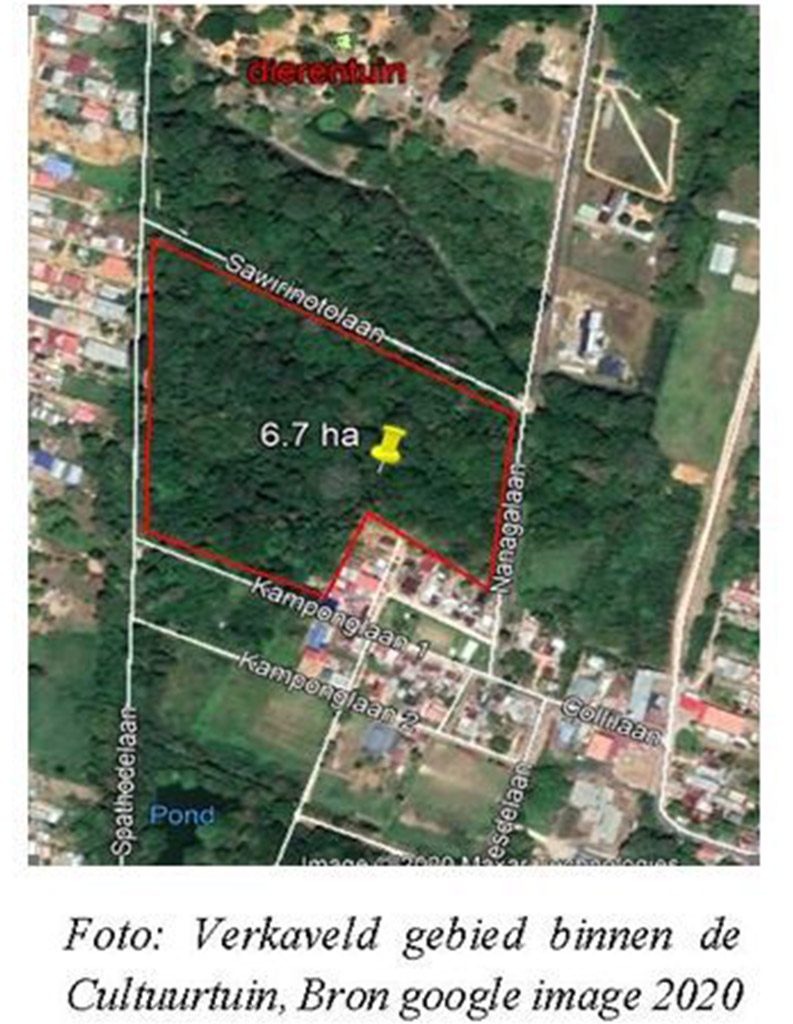 Uit recente nieuwsberichten heeft de samenleving mogen vernemen dat de voormalige Minister die was belast met de waarneming van Ruimtelijke Ordening, Grond- en Bosbeheer (RGB) kort voor zijn vertrek een gedeelte van de Cultuurtuin -ter grootte van 6,7 ha, gelegen tussen de Kamgon-, Kananga- en Sawarienotolaan, heeft verkaveld en bouwkavels hieruit heeft uitgegeven aan diverse personen. Vervolgens is door alertheid van bezoekers alarm geslagen over ontbossing van een deel van het park. Uit veld visitatie blijkt dat de bomen en vegetatie op een stuk grond van ongeveer 30 bij 180 m (bijkans 0,5 hectare) volledig zijn verwijderd.