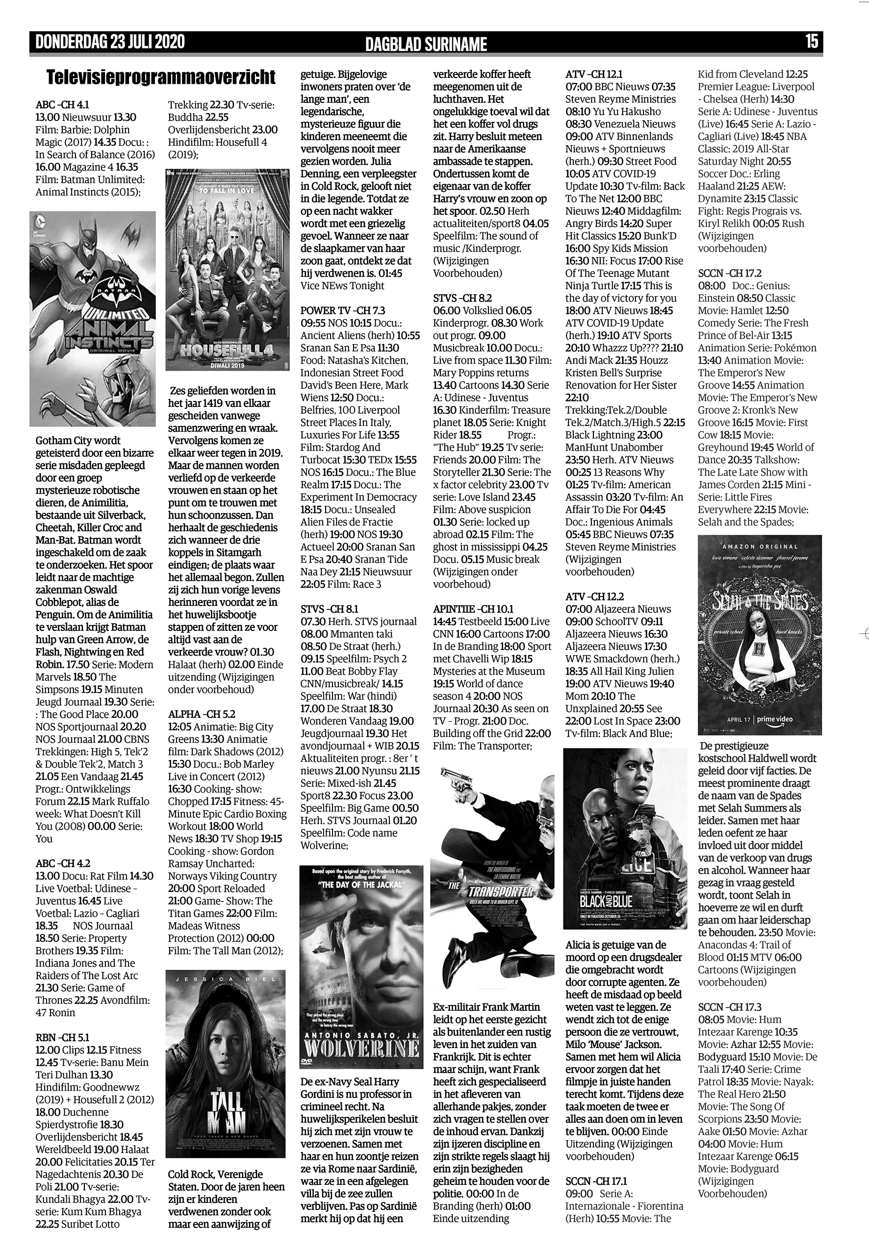 TV programmaoverzicht donderdag 23 juli 2020 Geplaatst op juli 23, 2020juli 23, 2020 Bericht navigatie VorigeRegering neemt vrijdag besluiten over verdere COVID 19 aanpakVolgendeBuurjongen vraagt moeder 12-jarige om vergiffenis