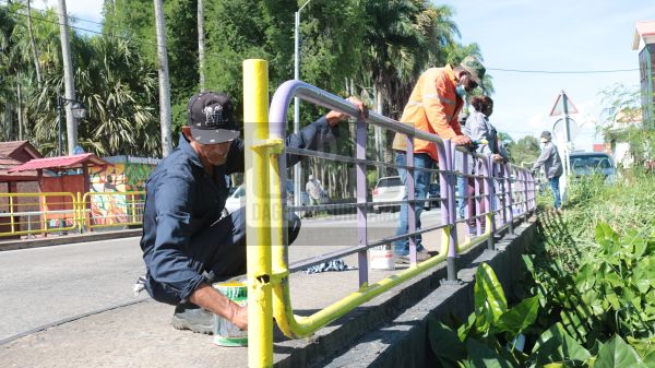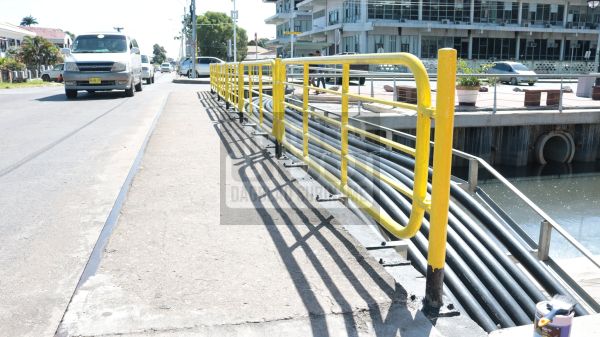 De leuningen van de brug in de grote Combeweg nabij de Roseveltkade zijn nu voorzien van de juiste kleuren voor infrastructurele werken als deze.