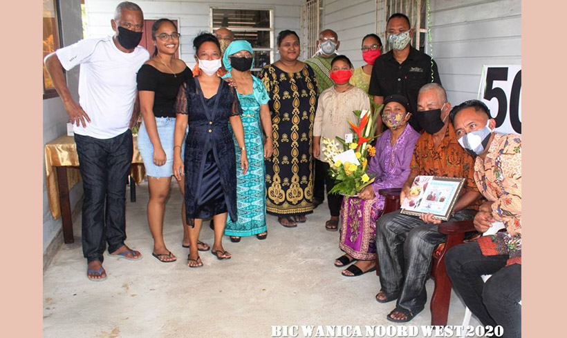Op 21 juli jongstleden is het echtpaar Oesoep Amatngali en Painem Marjanom gehuldigd voor hun gouden huwelijk; dit echtpaar is nu dus 50 jaar getrouwd. Districtssecretaris Christine Nerkust bracht een officieel bezoek aan het jubilerend echtpaar te Koewarasan Seri C. Amatngali Oesoep zag het levenslicht op 27 oktober 1945 in het district Suriname. Hij begon op 15 jarige leeftijd met het verrichten van bouwwerkzaamheden onder een aannemer en dit heeft hij tot zijn 24ste gedaan. Op zijn 25ste trad hij in het huwelijk . Na het huwelijk kreeg hij een baan bij de overheid, en wel bij de belastingdienst alwaar hij 2 jaren heeft gewerkt. Daarna werd hij overgeplaatst naar het Ministerie van Sociale Zaken en Volkshuisvesting. Hij heeft zich daar opgewerkt tot staflid en ging na 33 dienstjaren met pensioen. In zijn vrije tijd deed hij nog aan bouwen van huizen met zijn team. Oesoep is tot heden voorzitter van Badah Islam Moskee te Koewarasan serie A.