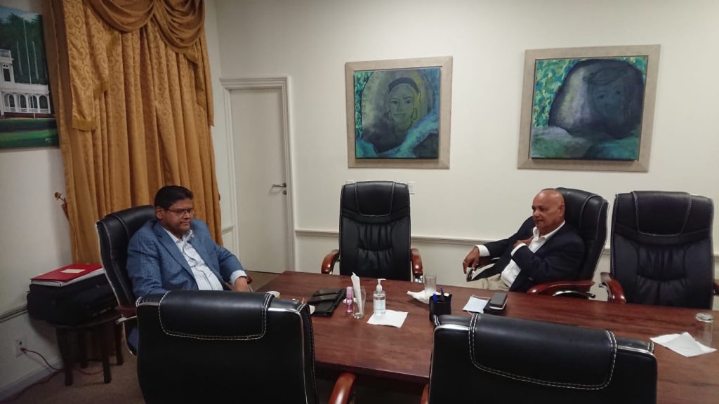 Jay Pahladsingh op bezoek bij de President van de Republiek Suriname, Z.E. President Chandrikapersad Santokhi.