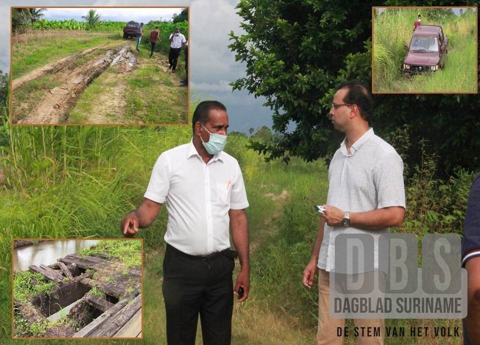 Minister Riad Nurmohamed van Openbare Werken heeft afgelopen zaterdag een bezoek gebracht aan de Uitkijkpolder, het grootste landbouwproductiegebied van het district Saramacca. Het bezoek van de bewindsman kwam binnen een week nadat VHP-assembleelid Mahinder Jogi een brief naar de minister schreef en hem om acute aanpak vroeg naar de deplorabele staat van de wegen en houten bruggen binnen de Uitkijkpolder. De delegatie die de landbouwgebieden bezocht, bestond verder uit enkele boeren, districtsraads- en ressortraadsleden. De bewindsman mocht allereerst de verrotte houten bruggen bezichtigen, waarna hij het landbouwgebied te Uitkijkpolder werd ingebracht om de zeer deplorabele klei- en zandwegen te bezichtigen die door de recente regens deels is veranderd in een modderpoel. Hierna kreeg Nurmohamed een rondleiding bij de twee pompgemalen. Bij het pompgemaal te Uitkijkpolder is 1 van de 3 pompen 6 tot 7 jaren terug uitgevallen en nog steeds niet gerepareerd. De beheerder daar was tot verrassing van de minister nergens te bespeuren. Volgens Jogi woont wel een zekere ‘baas van het pompgemaal’ enkele huizen verder, maar op afroep vaak genoeg weigert zijn medewerking te verlenen. “Nooit a mang de fu feni, terwijl buru e sungu. Pompu musu draai, maar den mang ne draai a pompu”, benadrukte het assembleelid.