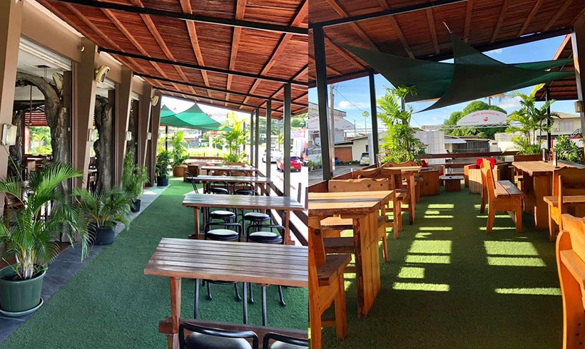 Door het heersende Covid-19 virus heeft de economie overal ter wereld een klap gekregen, maar nu, beetje bij beetje proberen bedrijven op te komen met behulp van creatieve oplossingen. Zo ook bij South Square Plaza. Directeur Peter Lau geeft in een gesprek met Dagblad Suriname aan dat sinds 8 maart 2020 South Square Plaza aan delivery doet. maar dan wel binnen een straal van 10 km. Deze delivery service zorgt ervoor dat mensen in deze (Covid)tijd toch kunnen genieten van een scala aan gerechten zonder uit huis te moeten. Het bedrijf dat voor de heer Peter Lau de delivery doet, zorgt ervoor dat orders heel hygiënisch worden afgehandeld en naar tevredenheid worden gebracht naar de plaats van bestemming. Los van de delivery service heeft Peter Lau een overdekt terras om mensen toch tegemoet te komen die wel eens uit huis willen om gezellig ergens te zitten eten, mits zij zich houden aan de Covid-19 maatregelen. Zo is het verplicht om bij het betreden van de zaak de lichaamstemperatuur op te meten, de handen te desinfecteren en een mond/neusmasker te allen tijde op te hebben, behalve tijdens eten.