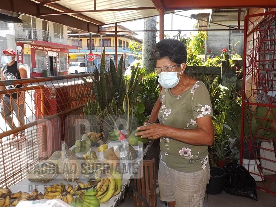“Een paar jaar geleden keerde ik terug naar mijn eigen pand aan de Flamingostraat. Ik besloot door te gaan met de handel in fruit en aanverwante zaken. Om aan een vergunning te komen, moest ik SRD 1.200 neertellen. Bovendien moest ik mijn restaurantvergunning inleveren dat, zonder de laatste devaluatie daarbij opgeteld, zeker SRD 30.000 heeft gekost. Ik weet waarmee ik bezig ben. Daarom gaf ik deze vergunning op. Ik ken de klappen van de zweep, dus gaat het beetje bij beetje.”