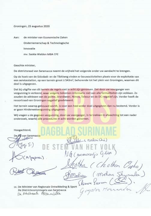De VHP-parlementariër Mahinder Jogi vindt dat de werkzaamheden voor de bouw van een betwiste pompstation te Groningen (Saramacca), op de hoek van de Sidodadi-en Tibitiweg, onmiddellijk moet worden stopgezet. “Districtscommissaris Bansi-Durga moet zich eerst goed oriënteren en geen valse start maken in Saramacca”, zegt de volksvertegenwoordiger aan Dagblad Suriname. De districtsraad van Saramacca heeft op 25 augustus middels een brief aan minister Saskia Walden van Economische Zaken, Ondernemerschap & Technologische Innovatie gevraagd om de gegeven vergunning door haar voorganger in te trekken in afwachting op een nader onderzoek, waarbij alle procedures in acht worden genomen. De kersverse burgermoeder zei vorige week aan de krant dat het betwiste pompstation niet zal worden afgebroken, omdat zij ondernemerschap in haar district ondersteunt. Samen met alle partijen gaat ze om de tafel, waarna aan de ondernemer zal worden gevraagd alsnog aan de vergunningsvoorwaarden te voldoen. Het terrein is ongeveer 543 vierkante meters groot en behoort tot het plein van Groningen. Jogi zegt dat de districtsraad geconstateerd heeft dat bij de uitgifte van dit terrein regels niet in acht zijn genomen. Zo zouden de adviezen van de politie, brandweer, Nimos, Telesur en de vorige dc negatief zijn, terwijl ook de ressortraad van Groningen negatief heeft geadviseerd. “Het terrein waarop gebouwd wordt, is voor een heel ander doel uitgegeven dan nu bestemd, terwijl er ook geen hinderwetvergunning is uitgegeven”, benadrukt de VHP’er. Hij ondersteunt de oproep van de districtsraad. Naast Jogi en de districtsraad zijn er ook burgers die tegen de bouw van dit pompstation zijn. Zo wordt gewaarschuwd dat Bansi-Durga niet met blunders moet starten.