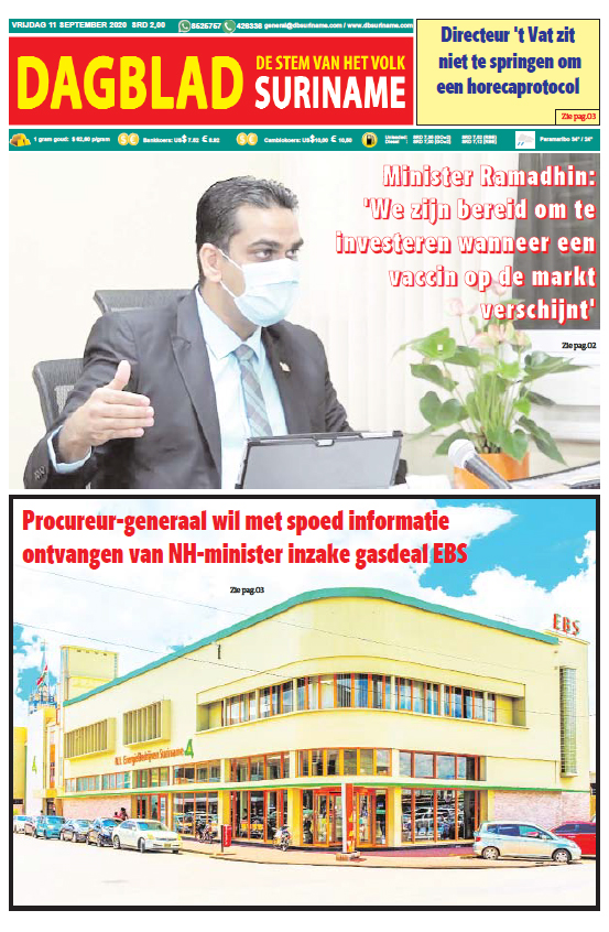 Lees Dagblad SurinameWaar de krant lezen nog leuk is.Vrijdag 11 September 2020 Geplaatst op september 10, 2020september 10, 2020 Bericht navigatie Vorige1 Covid-patiënt overleden en 30 nieuwe Covid-besmettingenVolgendeDrastische stijging aantal levensberovingen