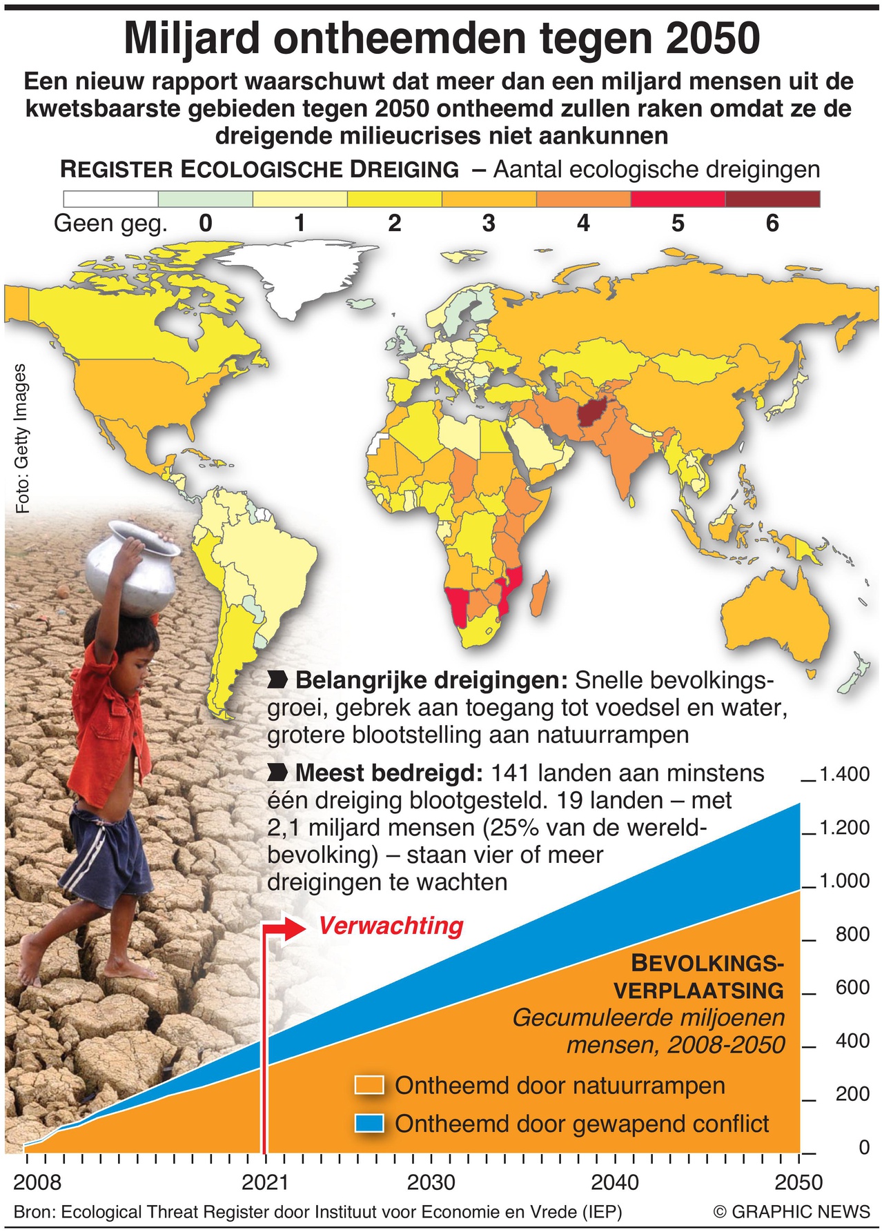 In 2019 kwamen er 8,7 miljoen mensen bij die gedwongen hun huis moesten verlaten, door oorlog, honger of andere omstandigheden. De meeste van hen wonen in ontwikkelingslanden.