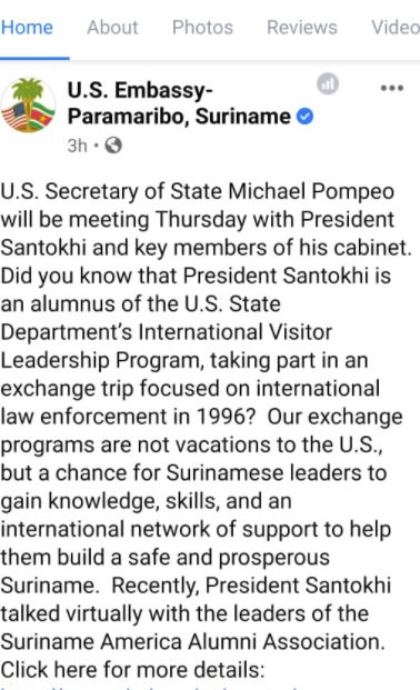 In verband met het bezoek van de Amerikaanse minister van Buitenlandse Zaken Michael Pompeo donderdag, zal er een wegomlegging zijn rond het presidentieel paleis van 13:00 uur tot 19:00 uur, zo meldt de Communicatie Dienst Suriname.
