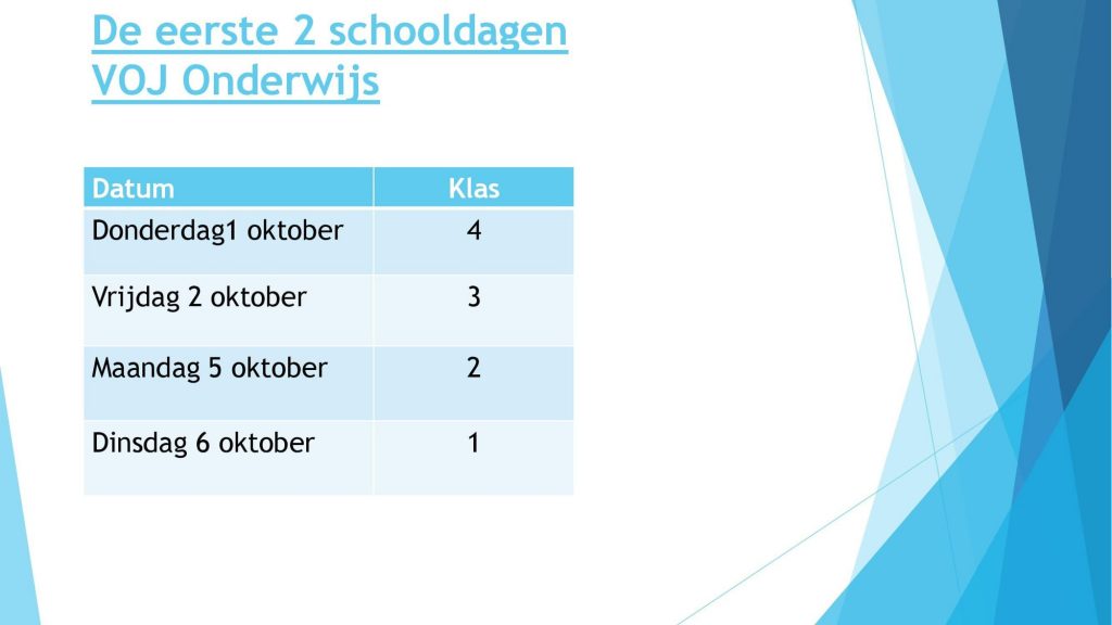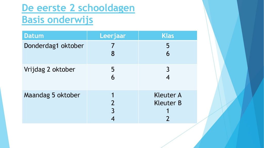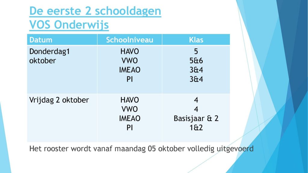 Het ministerie van Onderwijs, Wetenschap en Cultuur de officiele startdagen van de verschillende niveau’s voor het schooljaar 2020/2021.