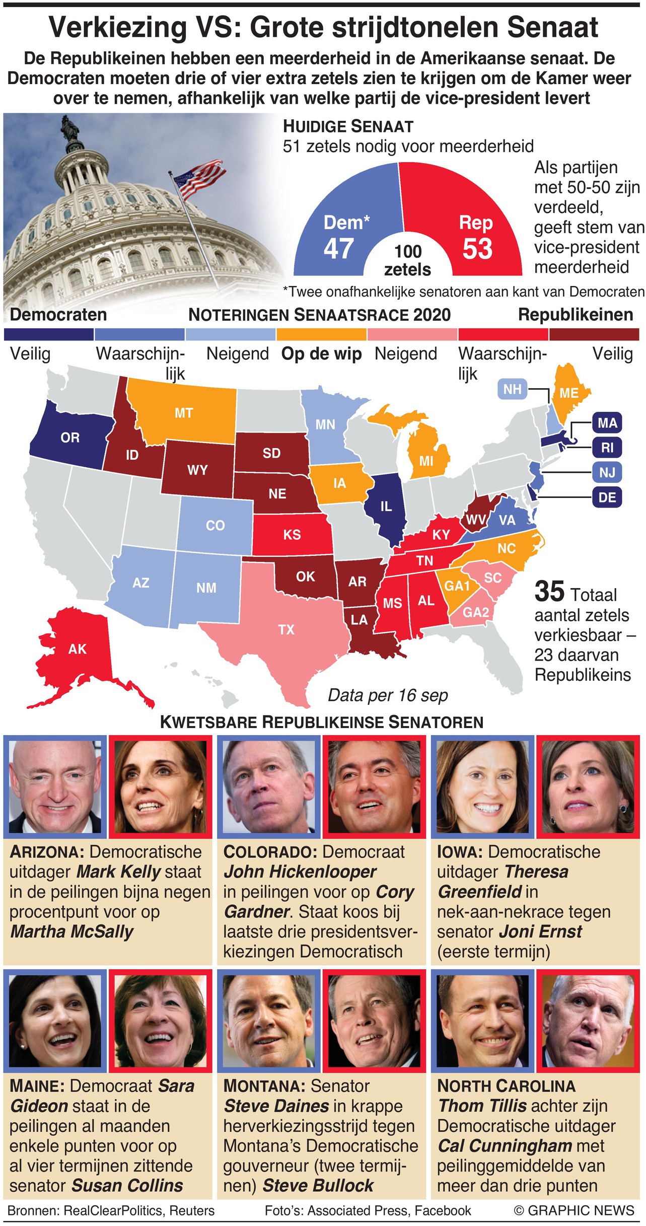 In battleground Arizona, Republican Sen. Martha McSally is trailing Democrat Mark Kelly, a former astronaut. GOP Sen. Susan Collins is relying on her independent brand to try to fend off challenger Sara Gideon in Maine.