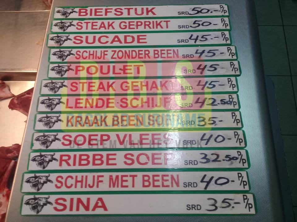 “Er is op dit moment geen enkele slager in Paramaribo die winst maakt op rundvlees”, zegt Peter Nurmohamed, slager op de Centrale Markt. Merendeels komt dat door de economische situatie in het land en ook nog de uitbraak van Covid-19. Als islamitische slager verkoopt hij uitsluitend rundvlees. Een pond schijf met been of soepvlees kost momenteel SRD 40, terwijl een pond biefstuk SRD 50 per pond kost. In 2018 kostte een kilo rundvlees nog rond de SRD 43 en SRD 47. “De slachtkosten alleen zijn SRD 370. Dan praten we niet eens over koelfaciliteiten per dag en het schoonmaken van de darmen. Wij van de markt hebben geen koelcellen waar wij het vlees kunnen opslaan”, vertelt Nurmohamed. De slager vertelt dat hij daarom voornemens is om een brief te schrijven naar het ministerie van Economische Zaken, Ondernemerschap en Technologische Innovatie (EZ) en de districtscommissaris van Paramaribo Noord-Oost om zijn vergunning niet meer te laten verlengen. “Omdat ik op verlies draai. Negatief”, benadrukt hij. De slager, wiens vergunning in december vervalt, stelt het beu te zijn dat nog niets gerealiseerd kan worden. Nurmohamed stelt dat islamitische slagers, die uitsluitend in rundvlees handelen, slechts gebruik kunnen maken van slachthuis Surbeef. “En Surbeef slacht slechts twee keren in een week. Dat is op de maandag en donderdag. Hoe moeten wij als slagers nu doen?”, stelt hij.