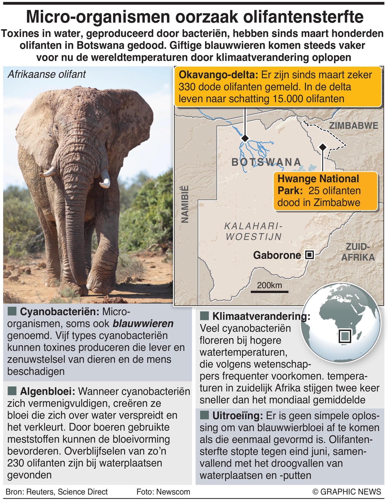 oxins in water, produced by bacteria, have killed hundreds of elephants in Botswana since March. Toxic cyanobacteria are occurring more frequently as climate change drives up global temperatures.