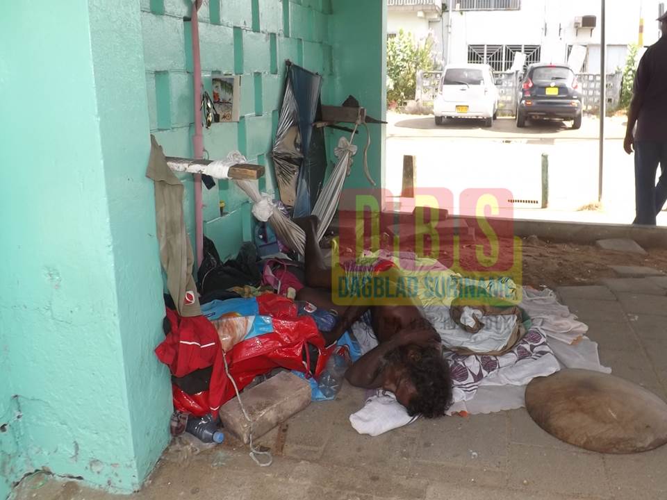 Het wachthuisje op het trottoir van het AZP (Academisch Ziekenhuis Paramaribo) wordt bewoond door een landgenoot voor wie het leven in Suriname reddeloos verloren lijkt. Een voorbijganger merkte op: “En dat op de stoep van een ziekenhuis. Kijkt u maar naar de rommel op het trottoir, waar je kan struikelen over de losgeraakte straattegels en je nek breken. Het Coronavirus grijpt om zich heen.”