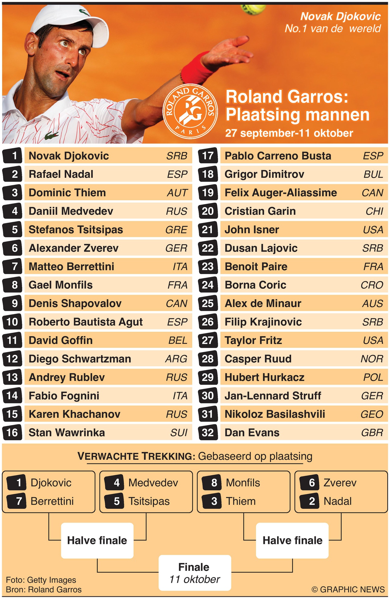 Clay court master and 12-time Roland Garros champion Rafael Nadal is seeded No.2, with U.S. Open winner Dominic Theim at No.3 and Daniil Medvedev at No.4 seed.
