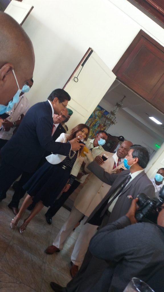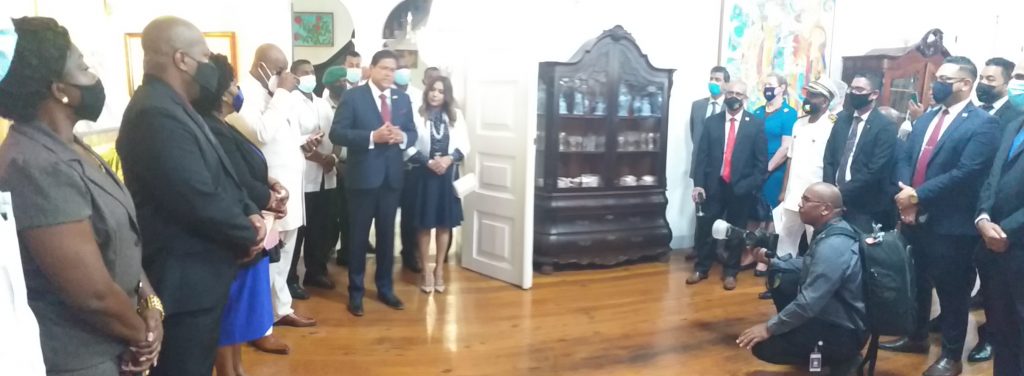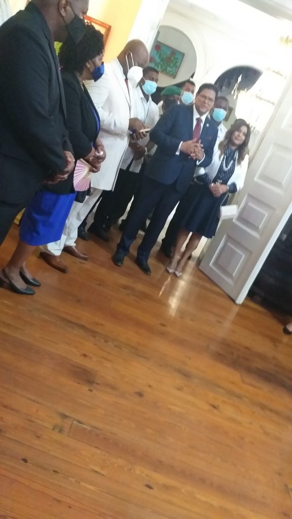 President Chan Santokhi hield vandaag na de jaarrede een receptie op het Presidentieel Paleis. Onder de aanwezigen waren onder andere de firstlady Melissa Santokhi-Seenacherry, Vicepresident Ronnie Brunswijk en echtgenote, Voorzitter Marinus Bee, Vicevoorzitter Dew Sharman, leden van de raad van Ministers, leden van het parlement en leden van de staatsraad en buitenlandse vertegenwoordigers en ambassadeurs.