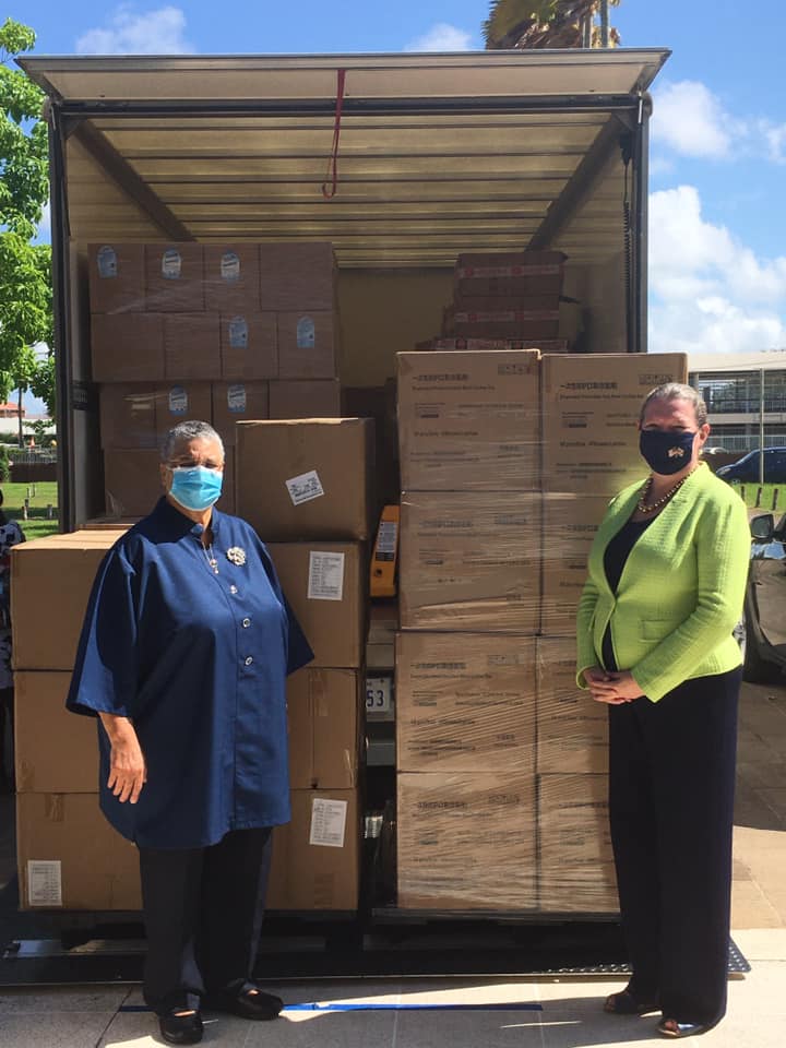 De Amerikaanse ambassadrice in Suriname, Karen Lynn Williams, heeft woensdag minister van Onderwijs, Wetenschap en Cultuur Marie Levens dozen gezichtsmaskers, kratten handdesinfecterend middel en honderden thermometers voor gebruik in alle 213 middelbare scholen overhandigd ter waarde van US$ 50.000.